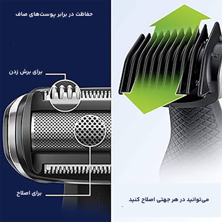 تیغه های تعبیه شده در مدل PRO فیلیپس به صورتی طراحی شده است که به مرور زمان باعث کاهش رشد موهای زائد بدن میشود.