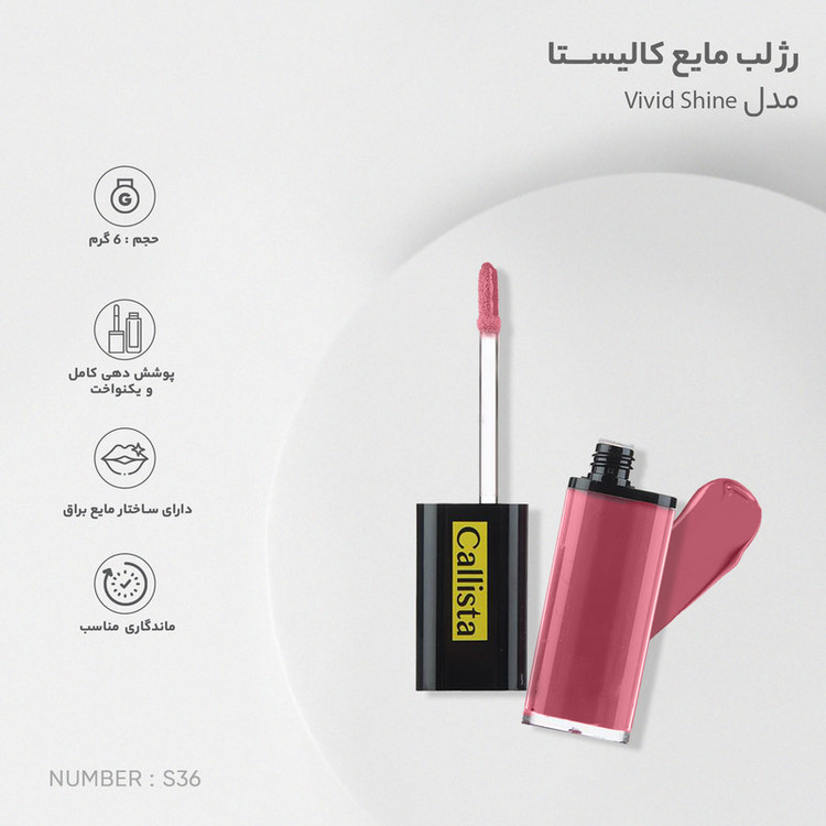 - دارای ساختار مایع براق- پوشش دهی کامل و یکنواخت- ماندگاری مناسب- پخش آسان بر روی لب ها- پایه رنگ: صورتی