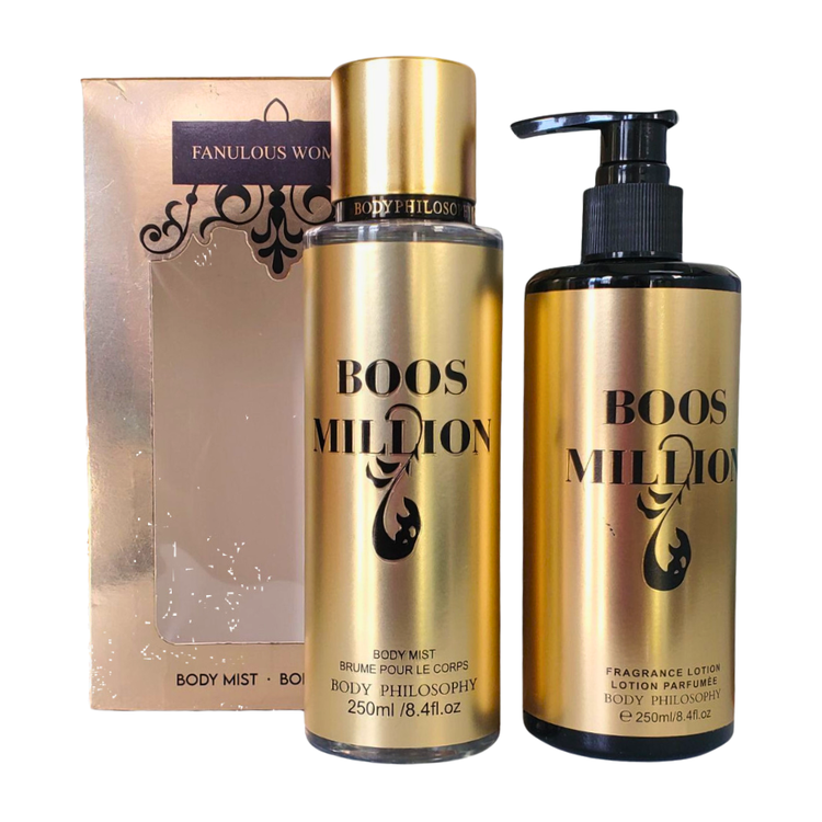 بادی اسپلش مردانه فلاسوفی مدل میلیون Body Mist Philosophy BOOS MILLION یک محصول خوشبو کننده و مرطوب کننده برای پوست مردان است. این بادی اسپلش با رایحه ای گرم و شیرین، حس جذابیت و اعتماد به نفس را به شما القا می کند.