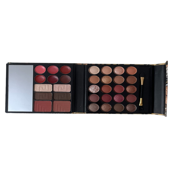 دارای ۲۰عدد سایه مات و براق و گلیتری دارای ۶ عدد رژ لب براق دارای ۲ عدد هایلایتر گلیتری دارای ۴ عدد رژ گونه به همراه براش و آینه
