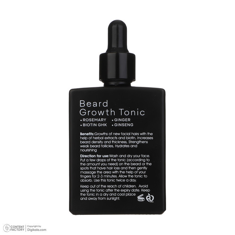 راهنمای استفاده: صورت خود را شسته و خشک کنید. چند قطره از تونیک را (با توجه به مقدار نیازتان) بر روی ریش یا نقاطی که ریزش دارد، بزنید و سپس به کمک نوک انگشتان به مدت 3-2 دقیقه ناحیه را به آرامی ماساژ دهید. اجازه دهید تونیک جذب شود. از این تونیک دو بار در روز استفاده کنید.