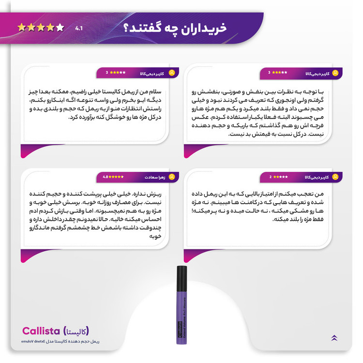 آرایش چشم و مژه از زمان قدیم تا به حال یکی از اصلیترین نوع آرایشها برای زیبایی صورت به حساب امده است. این امر نشاندهنده اهمیت دادن ما به آرایش چشم بوده و یکی از لوازم آرایشی پرکاربرد استفاده از ریمل برای فرم دادن به مژهها است. مژهها یکی از اصلیترین قسمتهایی هستند که به زیبایی چشم میافزایند. ریمل حجم دهنده کالیستا مدل Extend Volume(Calista) عرضه شده و به زیبایی هرچه تمامتر چشمان شما کمک میکند. از ویژگیهای این ریمل میتوان پرپشت کننده، بلند و خوش حالت کننده مژه ها، حاوی رنگدانه های غلیظ و مشکی و ماندگاری مناسب اشاره کرد.