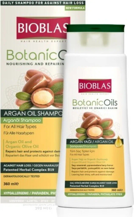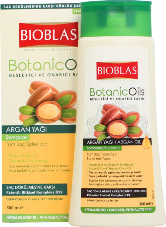 شامپو گیاهی بیوبلاس (Bioblas) حاوی روغن آرگان با فرمولاسیون غنی از روغن آرگان خالص و محتویات تغذیه کننده به عنوان بهترین شامپو ضد ریزش مو به شمار می رود که با قطع ریزش موها، از کم حجم شدن موها جلوگیری می کند. نتیجه استفاده مداوم و منظم از این شامپو موهایی قوی، سالم و پرپشت خواهد بود.
