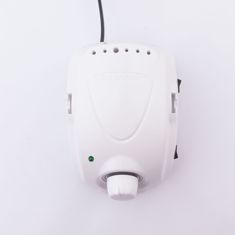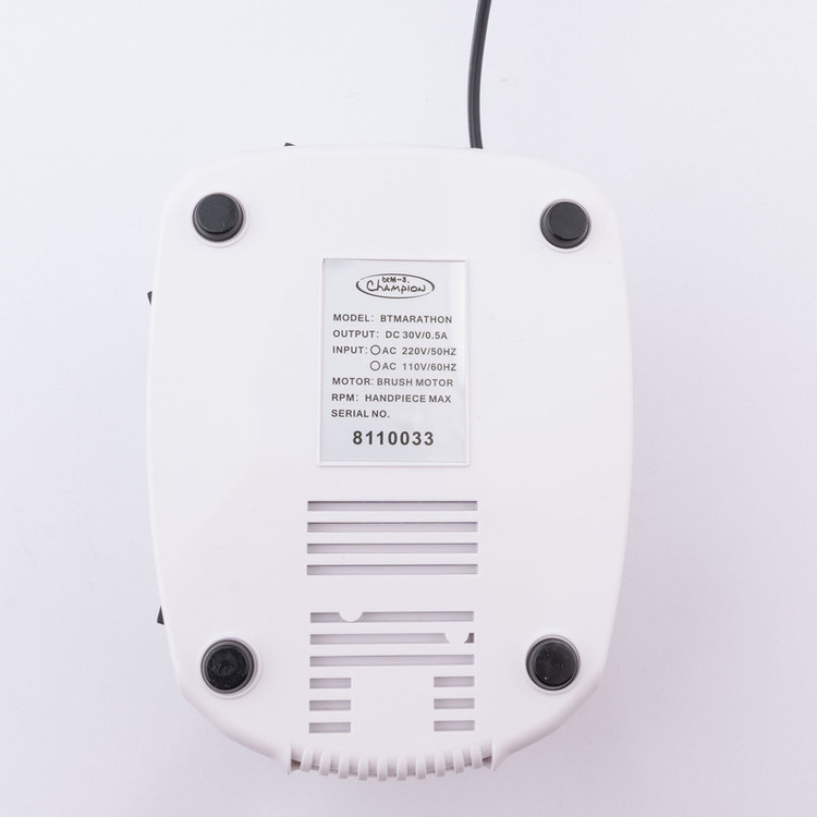 سوهان برقی وسیله ایی است برای شکیل کردن ناخنها و دندان که در صنعت آرایشگری و دندانپزشکی استفاده میشود. نکته مهمی که در استفاده از این ابزار وجود دارد این است که حتما این وسیله باید توسط افراد حرفه ایی و آموزش دیده به کار گرفته شود در غیر این صورت خطراتی را برای شما به همراه دارد. سوهان برقی بی تی ماراتون مدل CHAMPION مدلی با کیفیت که برای استفاده در مانیکور و پدیکور در سالنهای آرایشی مناسب است و سطح ناخنها را در زمان کوتاهی هموار میکند. ترانس این ابزار قدرتی بالای 35 هزار دور دارد که به سر هندپیس قابلیت حرکت در جهت عقربههای ساعت و خلاف جهت عقربههای ساعت ( دور موتور چپ گرد و راست گرد) را میدهد. سوهان برقی بی تی ماراتون مدل CHAMPION از سه قسمت هندپیس، پدال و ترانس تشکیل شده است. از این محصول هم به صورت دستی و هم به صورت پدالی میتوانید استفاده کنید. سوهان برقی بی تی ماراتون مدل CHAMPION دارای ولتاژ 110-220 ولت است. این مدل در نمای جلوی ترانس خود دارای دریچههای تهویه هوا و بالای این دریچهها دیمر برای کنترل سرعت چرخش از 0 تا 30000 دور را دارد.