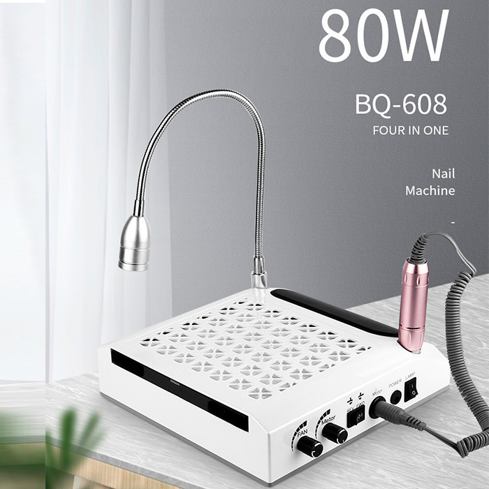 دستگاه مانیکور و پدیکور 4کاره بلوکیو مدل BQ608 یکی از بهترین دستگاه های کاشت ناخن ساخت کشور چین می باشد، این دستگاه با توان 122W دارای یک هندپیس بسیار سبک و خوش دست آرایشی است با دور موتور بالای 30000 دور و توان 36w ، توان موتوری قسمت مکش برابر با 80W و لامپ میز کار 6W میباشد سایز این دستگاه 240x228x80 م م و وزنی معادل 1.8kg را برای شما فراهم میکند. دیگر نیاز نیست برای کار خود چندین دستگاه مختلف تهیه کنید. این دستگاه تمام نیاز های شمارو براورده میکند. بلوکیو سال هاست در زمینه ساخت تجهیزات پزشکی و بهداشتی فعالیت دارد. می توان گفت یکی از بهترین دستگاه های موجود در بازار ایران برای کار حرفه ای بلوکیو مدلBQ608 است