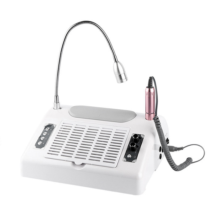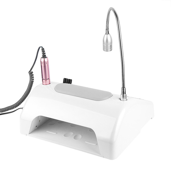 پکینگ دستگاه شامل : 1-بدنه اصلی 2-چراغ روشنایی 3-هندپیس 4-فن و سینی زیر دست 5-آداپتور 6-لاک خشکن 7-سوئیچ پای کوچک (اختیاری) 8- 6عدد سری سوهان 9-کتابچه راهنما