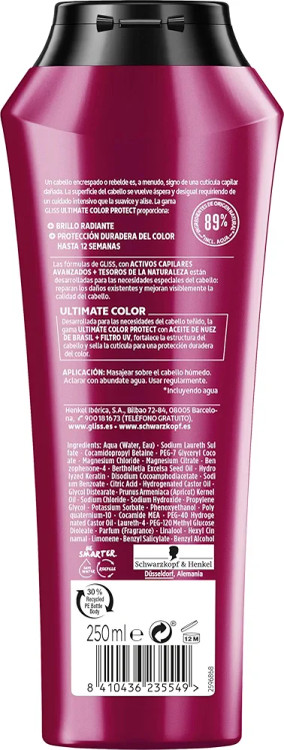 شامپو گلیس قرمز مخصوص موهای رنگ شده مدل COLOR PROTECT با حجم 600 میلی لیتر مناسب برای مصرف بانوان و آقایان عرضه شده است. این شامپو تقویت کننده ، ترمیم کننده ، لطیف کننده و نرم کننده موهای آسیب دیده و بسیار خشک میباشد. استفاده از گلیس Gliss درخشندگی و لطافت را به موهای شما برمیگرداند.