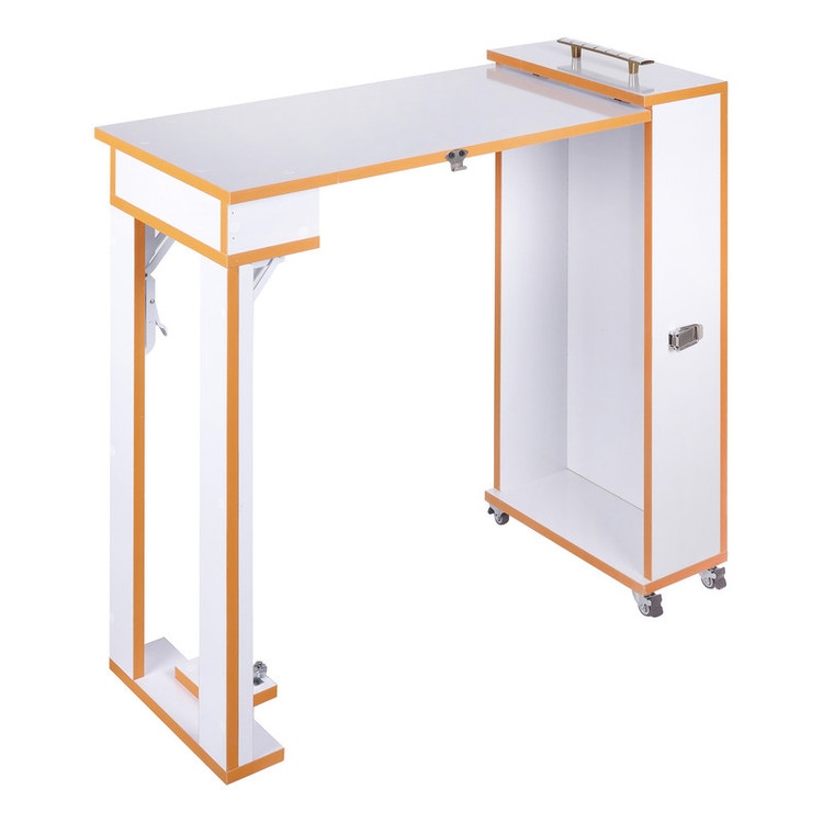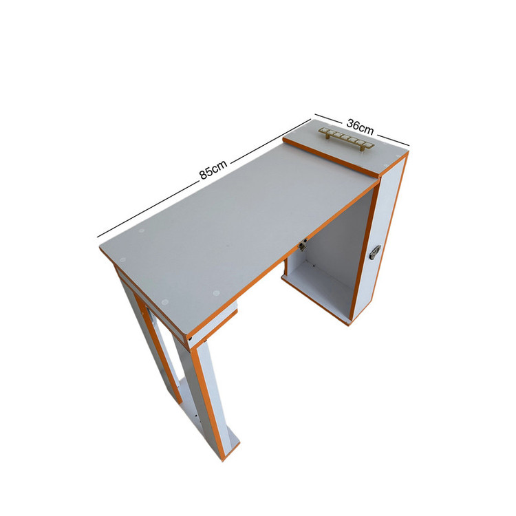 میز کاشت ناخن مدل تاشو و قابل حمل که دارای طراحی انحصاری و گواهی ثبت اختراع می باشد. از این میز مستحکم می توانید با خیال راحت به عنوان میز کار اصلی و یا میز کمکی در سالن و منزل از آن استفاده نمائید. ابعاد این میز کاملا استاندارد است. و این میز دارای چهار پایه قفل دار می باشد که با قفل کردن چهار پایه میز بی حرکت می ماند.