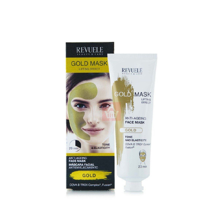 ماسک لیفتینگ و ضد پیری طلا Revuele با حجم 80 میلی لیتر یک محصول فوق العاده برای صورت با خاصیت آبرسانی و ضد پیری است. این ماسک دارای بافت طلایی و حاوی مجموعه ای از مواد فعال است که به آبرسانی، تغذیه و لفزایش کشسانی پوست کمک می کند. از ترکیبات اصلی می توان به کمپلکس COVA B TROX، کلاژن، ویتامین B5 و فیوژن هیدرات اشاره کرد. این ماسک را بر روی پوست تمیز مالیده و 20 دقیقه صبر کنید سپس آن را با آب پاک کنید. استفاده از آن 2 تا 3 بار در هفته توصیه می شود.