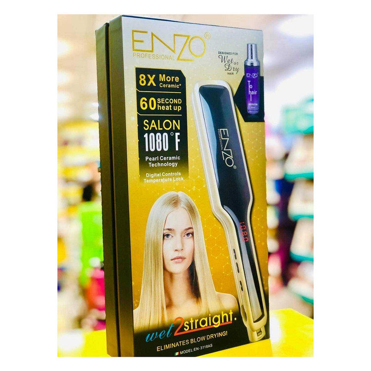 : اتو مو کراتینه، انزو، مدل 3118، صفحات سرامیکی، قابلیت تنظیم دما، روکش کراتین، موهای صاف، موهای سالم