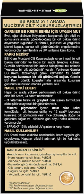 * حفاظت در برابر آفتاب: بی بی کرم گارنیر حاوی SPF است که از پوست در برابر اشعههای مضر خورشید محافظت میکند و خطر آفتاب سوختگی و پیری زودرس پوست را کاهش میدهد.