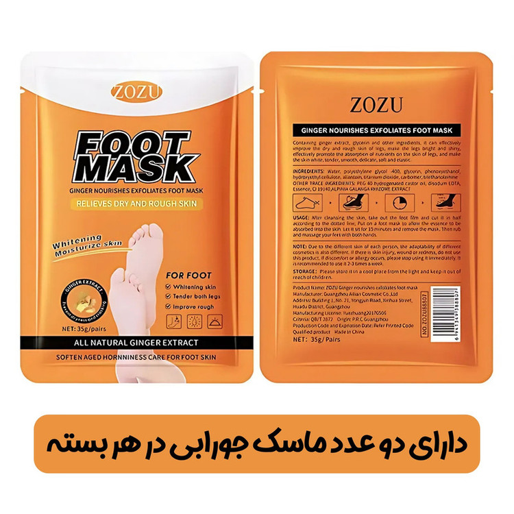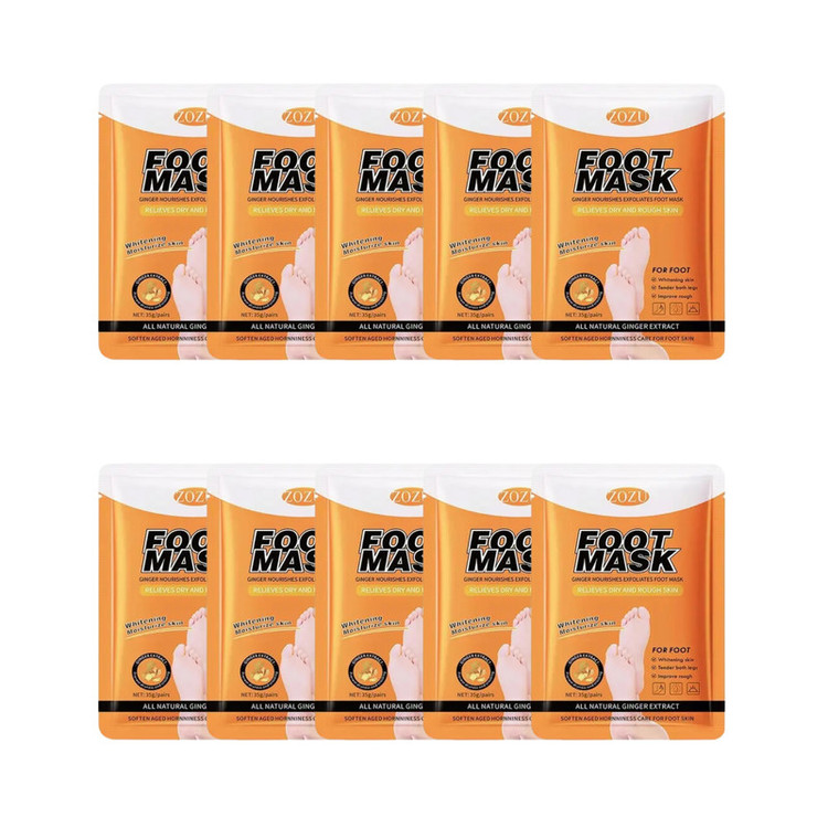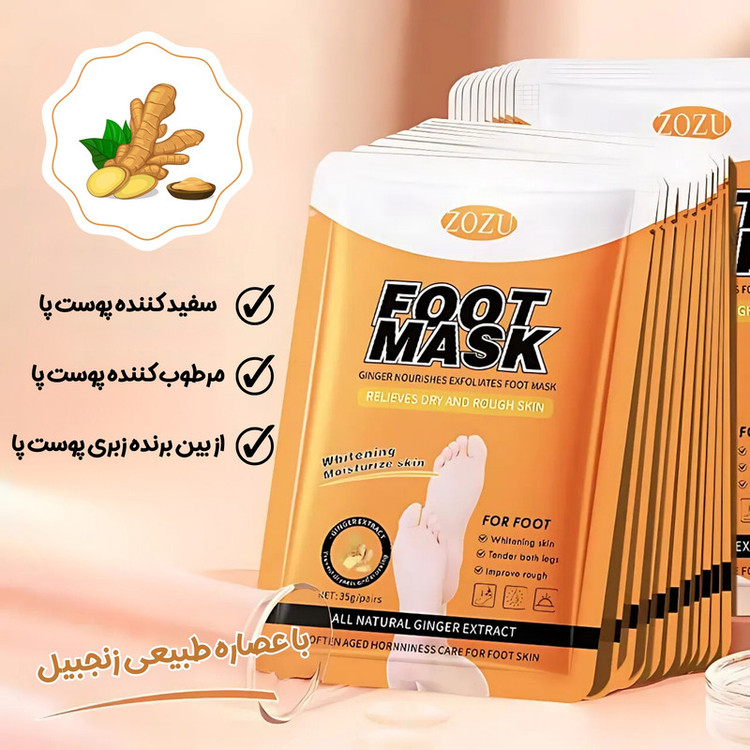 ۱۰ بسته ماسک پا با عصاره طبیعی زنجبیل (هر بسته شامل ۲ عدد ماسک جورابی برای استفاده هر دو پا میباشد.)