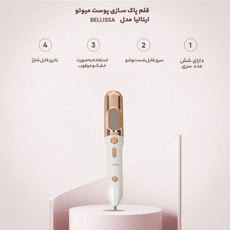 دستگاه بیوتی پن یا قلم پاکسازی پوست میوتو ایتالیا مدل بلیسا پیشرفتهترین مدل در بازار هست که هم جهت مصرف تخصصی در سالنهای زیبایی استفاده میشود و هم میتوان از آن در منزل جهت از بین بردن لک، خال و هرگونه رنگدانههای پوست بهره برد. این محصول دارای 9درجه قدرت قابل تنظیم است مه نور ال ای دی بسیار قوی آن میتوان کوچکترین لکها را از بین برد، بلیسا قابلیت استفاده سوزنهای یکبار مصرف و همچنین سوزن دائمی برای استفاده شخصی را دارد. طراحی ایتالیایی بینظیر بلیسا این محصول را به یکی از وسایل لوکس در کلینیک مراقبت از پوست یا منزل شما تبدیل خواهد کرد، باطری لیتیومی این دستگاه قابلیت نگهداری شارژ طولانی را دارد. میوتو ایتالیا در طراحی این مدل نهایت دقت را به کار برده و یک محصول کاملا ارگونومیک و سبک را روانه بازار کرده است.