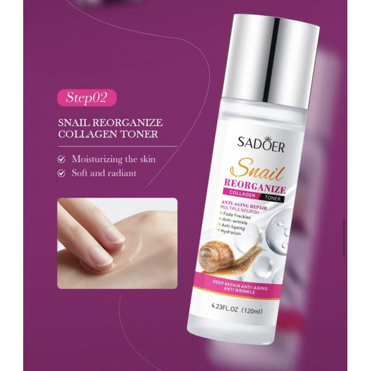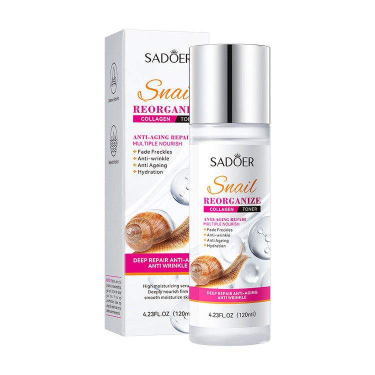 تونر حلزون سادور، تغذیه کننده پوست صورت و جلوگیری کننده و رفع پیری و چین و چروک پوست میباشد.به دلیل داشتن مقادیر بالای بزاق حلزون اثر بخشی عالی داشته و حالت الاستینه پوست را تقویت میکند.