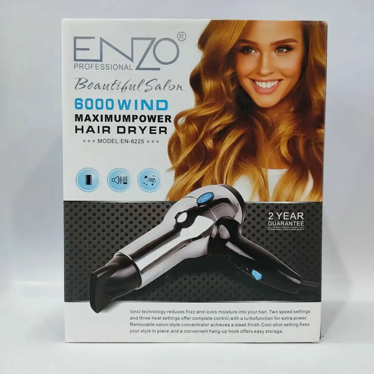 سشوار حرفهای انزو مدل EN-8225 بدنه استیل سالنی