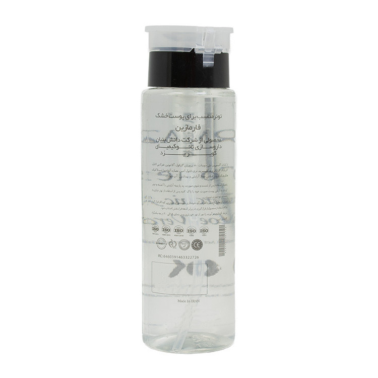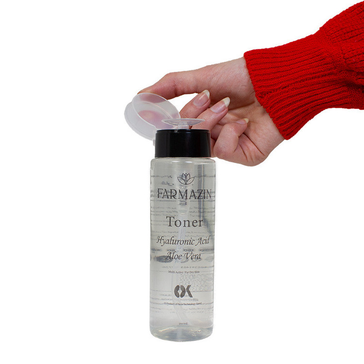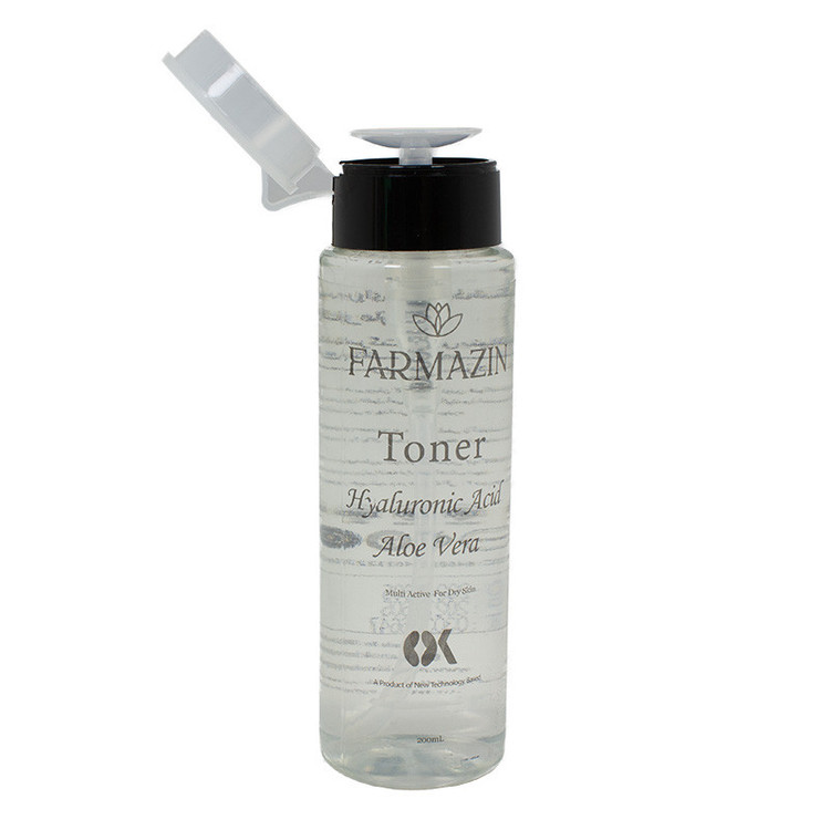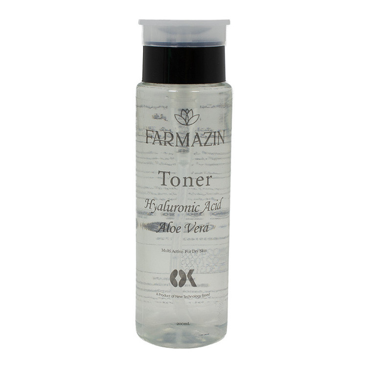 تونر فارمازین حاوی عصاره آلوئه ورا و هیالورونیک اسید می باشد. این تونر مناسب پوست های خشک است. جهت استفاده از آن پنبه را به مقداری از محلول آغشته کرده و به آرامی پوست خود را با آن پاک کنید.پس از استفاده نیازی به شست و شوی صورت نمی باشد.