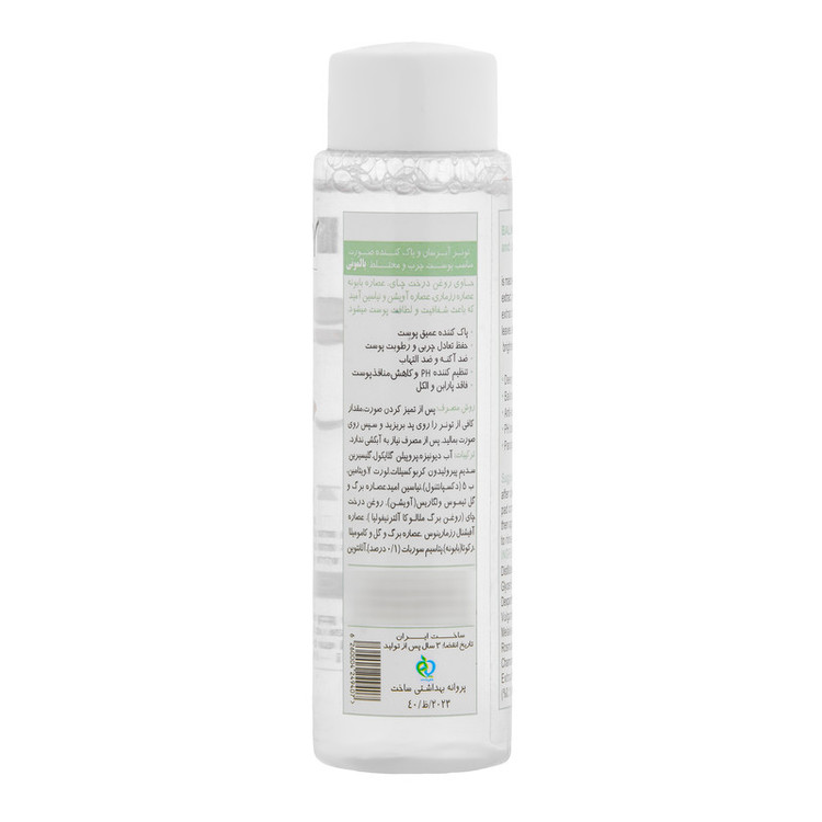 روغن درخت چای برای پاکسازی ملایم پوست شما با کمک به حذف چربی اضافی و کاهش آکنه با پاکسازی ملایم صورت و کاهش سوزش همچنین عصاره بابونه موجود در این تونر به کاهش التهاب پوست کمک میکند و میتواند به درمان جوشهای فعال آکنه، کاهش باکتریها و پاکسازی پوست کمک کند و در عین حال از جوشهای آینده نیز جلوگیری کند.
