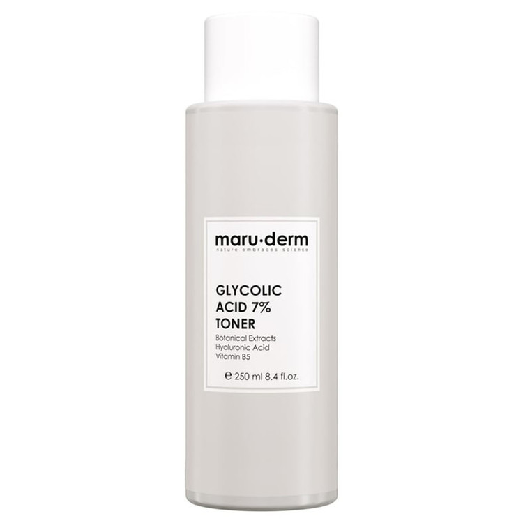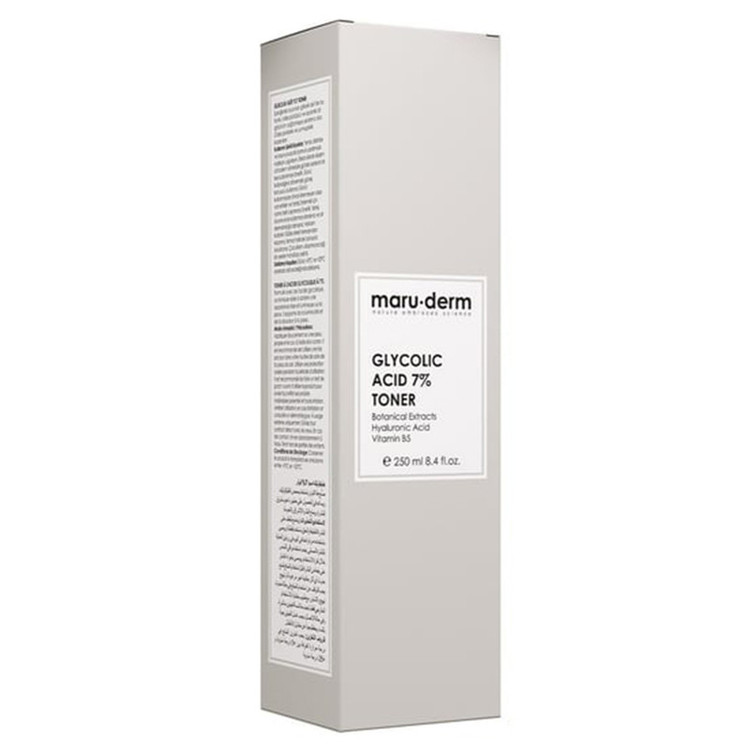تونر گلیکولیک اسید مارودرم فرموله شده با گلیکولیک اسید 7% مانند یک لایه بردار عمل کرده و با از بین بردن پیوند های سلول های مرده پوست و حذف انها پوست را شاداب تر ، روشن تر و شفاف تر میکند