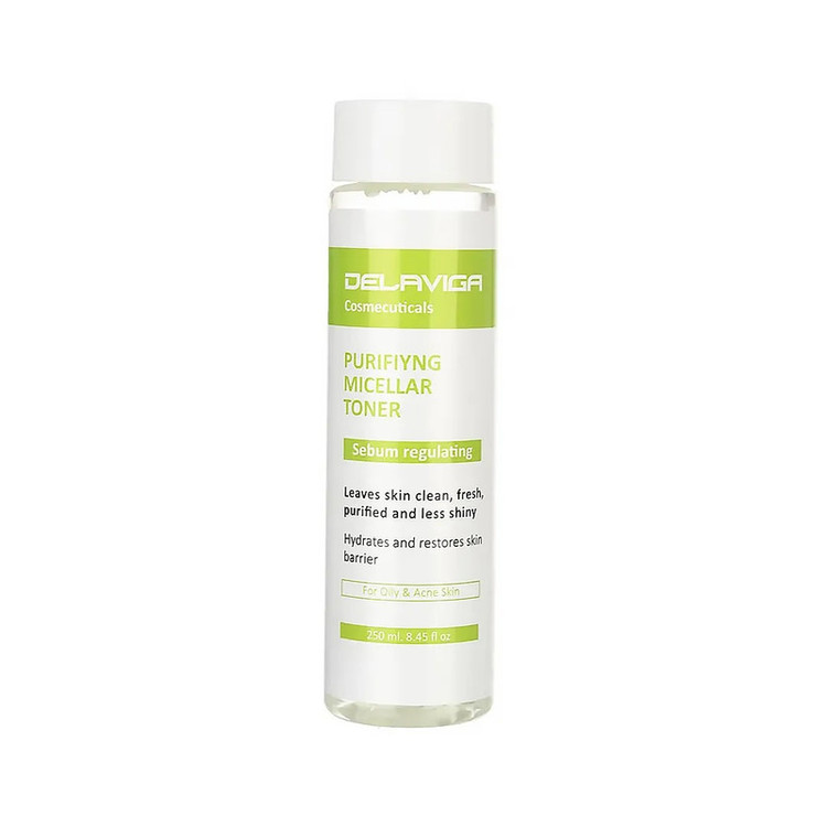 ویژگی های تونر مناسب پوست چرب دلاویگا: پاک کننده پوست از آلودگی ها، چربی ها و سلول های مرده، آبرسانی عمقی، افزایش سطح رطوبت و رفع خشکی پوست، کمک به تنظیم PH و تقویت فلور میکروبی طبیعی پوست، کمک به تنظیم ترشح چربی و جمع کننده منافذ باز پوست، حاوی کمپلکس Asebiol، نیاسینامید و کافئین می باشد.این محصول مناسب پوست های چرب و دارای جوش است.