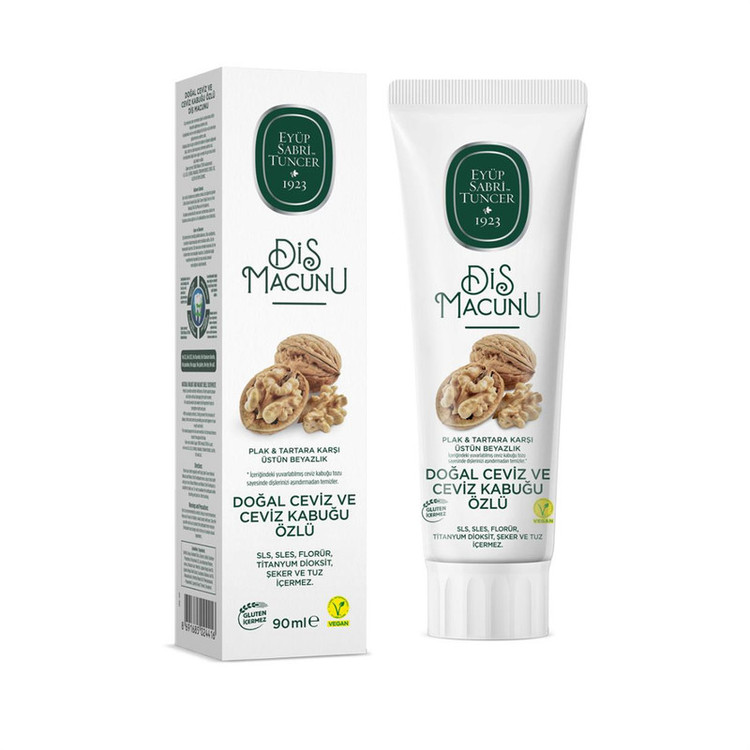 خمیردندان ما، با حفظ مینای دندان بدون آسیب رساندن به آن، سفیدی برتر در برابر پلاک و زبری دندان را فراهم میکند. معروف است که عصاره گردو و پوست گردو موجود در این محصول، اثر محافظتی در برابر زخمهای دهانی و لثه دارد. با استفاده از استخراجات اوکالیپتوس، از تشکیل پلاک، زبری دندان و تسوس جلوگیری میکند و به بهداشت دهان و دندان شما اهمیت میدهد. ترکیبات خمیردندان شامل روغن نعنا و منتول طبیعی، تازگی و مراقبت دهانی تازه را در طول روز به شما هدیه میدهد. اثبات شده است که پودر گردو موجود در این محصول خواص سایشی ندارد.