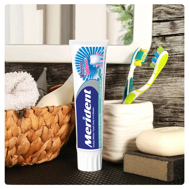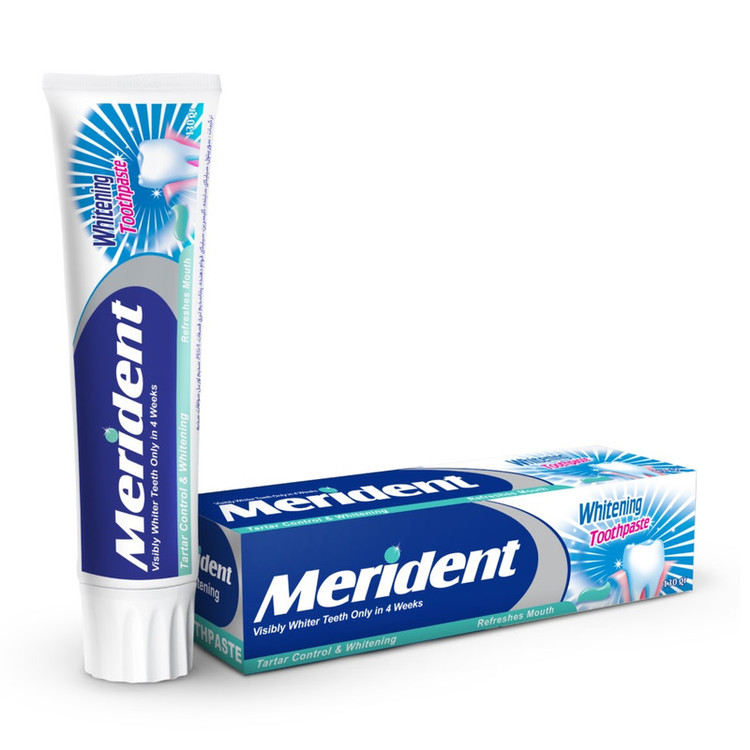 خمیردندان سفید کننده 130 گرمی مریدنت محصولی ایمن با مکانیسم موثر، جهت حذف و ممانعت از تشکیل لکه های دندانی موجود بر سطح مینای دندان می باشد. این محصول حاوی ترکیبات ساینده استاندارد، جهت سایش و پولیش مینای دندان (بدون آسیب به آن) بوده و همچنین با دارا بودن ترکیبات موثر فسفات در فرمولاسیون خود، توانایی کاهش لکه های دندانی در درازمدت را دارد.