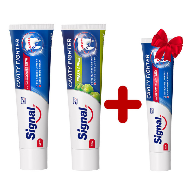 خمیر دندان ضد پوسیدگی با حجم 50 و حجم 100 میلیلیتر به علاوه خمیر دندان ضد پوسیدگی با طعم سیب و حجم 100 میلیلیتر