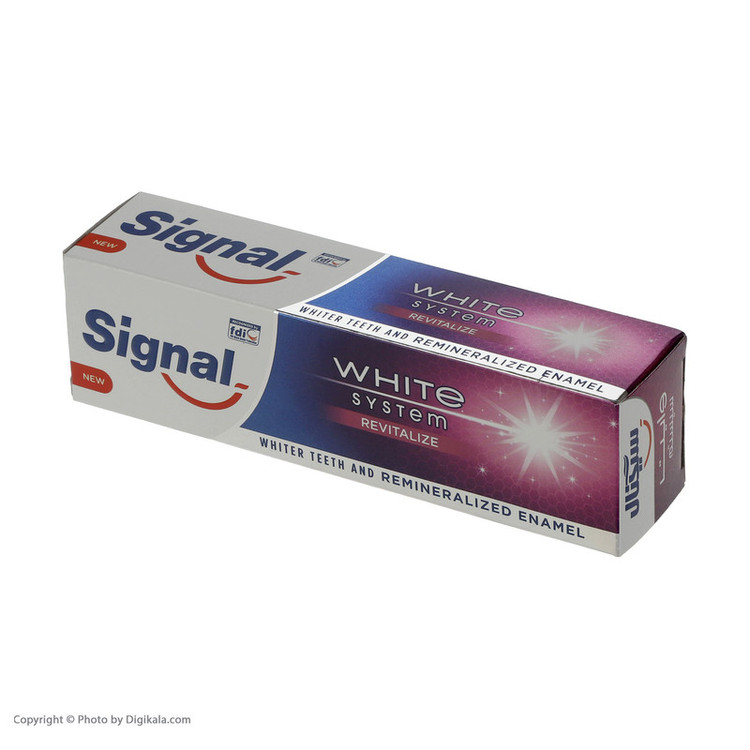 سایر مشخصات: - 2 عدد خمیر دندان ضد حساسیت سیگنال مدل Original وزن 100 گرم (ضد حساسیت - مناسب دندان های حساس) - خمیر دندان سفید کننده سیگنال مدل Revitalize حجم 75 میل لیتر