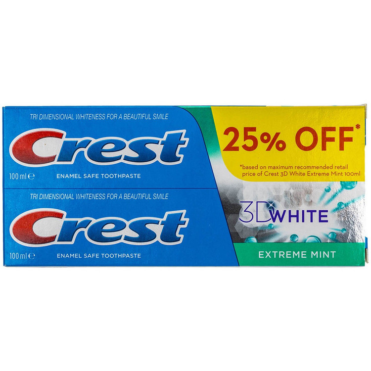 پک خمیر دندان کرست سری 3D White مدل Exterme Mint بسته 2 عددی