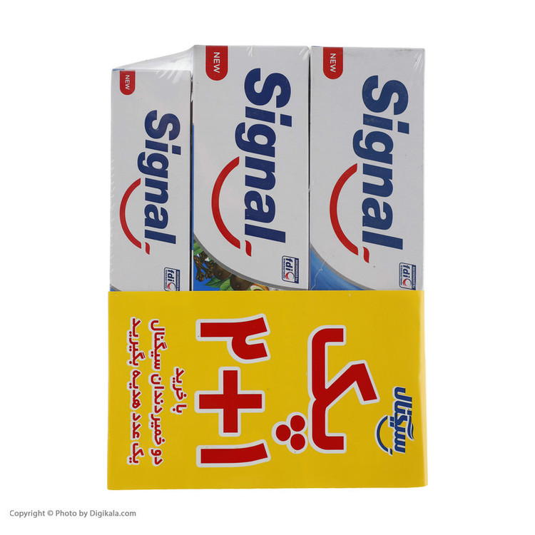 سایر مشخصات: خمیر دندان ضد پوسیدگی با حجم 50 و حجم 100 میلیلیتر به علاوه خمیر دندان ضد پوسیدگی با طعم گیاهی و حجم 100 میلیلیتر
