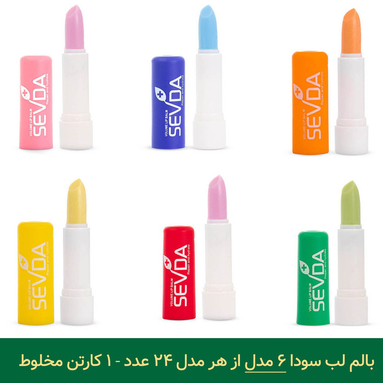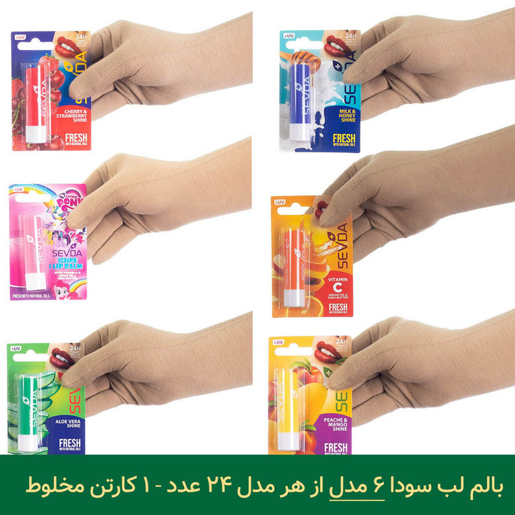 این محصول شامل 144 عدد بالم لب سودا میباشد. مدل های: شیرعسل ، گیلاس توت فرنگی ، آلوئه ورا ، انبه هلو ، ویتامینC ، ویتامینA,E