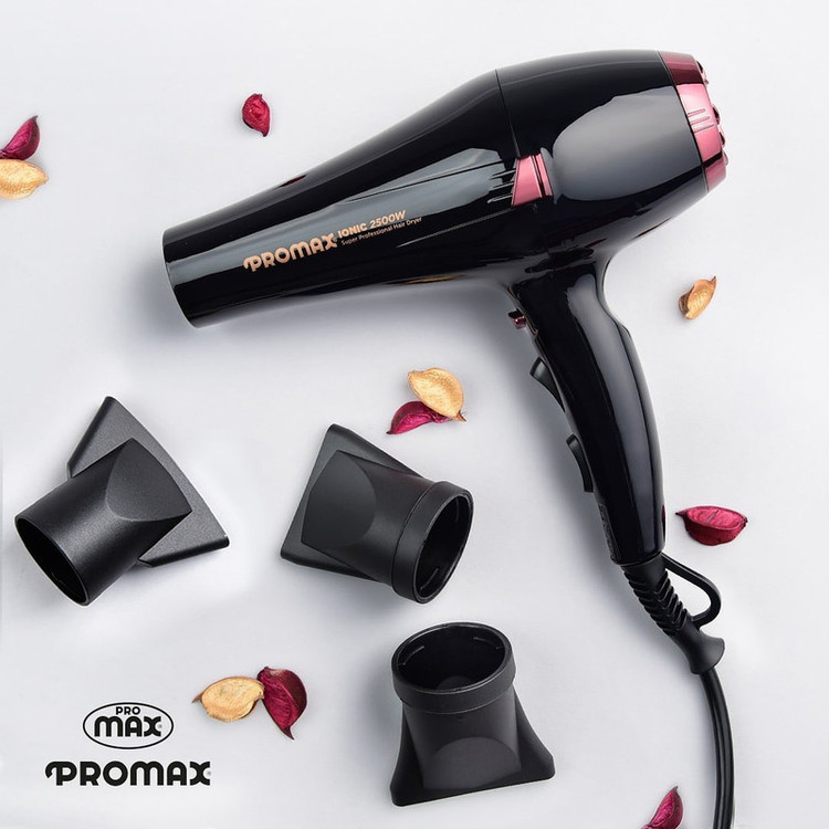سشوار پرومکس مدل 7250 سشواری حرفهای و مناسب کار در آرایشگاه است که دارای موتور 2500 وات AC، دکمهی فناوری تولید یون و سه متمرکز کنندهی هوا است. این مدل سشوار، قوی ترین سشوار سری 7000 محسوب می شود و حرارت بالای آن به همراه قدرت پرتاب بالای آن میتواند این محصول را به یکی از ایده آل ترین سشوارهای مخصوص براشینگ تبدیل کند. فناوری تولید یون در این سشوار به صورت خودکار است و با روشن شدن دستگاه شروع به کار می کند. این یونها با باد سشوار خارج میشود و پس از برخورد به موها الکتریسیته ساکن روی آنها را از بین میبرند. بهاینترتیب وز شدن مو کمتر اتفاق میافتد و حالت دادن به موها هم راحتتر میشود. این سشوار حرفهای دارای سه متمرکز کنندهی هوا با اندازههای مختلف است که با توجه به نیاز میتوان از یکی از آنها استفاده کرد. فیلتر ورودی هوا را میتوان به شکل چرخشی جدا کرده و آن را شست. بهاینترتیب علاوه بر اینکه قدرت باد سشوار حفظ میشود، عمر آن هم افزایش مییابد. برای حالت دادن و خشککردن موها میتوان سرعت و حرارت باد را روی مقدار دلخواه تنظیم کرد. برای این کار باید از دکمههای روی دسته استفاده کرد که دو حالت سرعت متوسط و زیاد و سه حالت حرارت سرد و گرم و داغ را فراهم میکنند. از دیگر ویژگیهای سشوار پرومکس مدل 7250 میتوان به سیم 3 متری و حلقهی آویزان کردن آن اشاره کرد که برای استفادهی در مکانهایی مانند سالنهای آرایشی ضروری هستند.