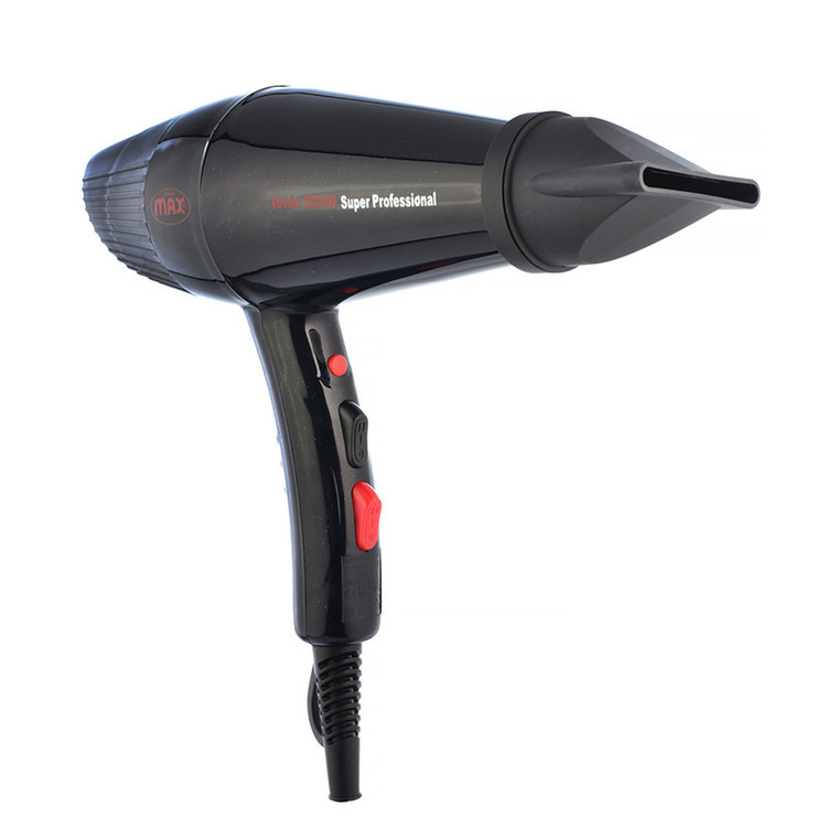 سشوار «پرومکس» (Promax) مدل «7200» سشواری حرفهای دارای موتور 2000 وات AC، دکمهی فناوری تولید یون و سه متمرکزکنندهی هواست.موتور سشوار از نوع AC است که مخصوص سشوارهای مورداستفاده در سالنهای آرایشی است. توان این موتور نیز 2000 وات بوده که مقداری معمول است. سرعت زیاد باد سشوار برای براشینگ مناسب است. از ویژگیهای بارز این سشوار فناوری تولید یون با دکمهی فعالسازی است. در بالای دستهی سشوار، دکمهی تولید یون وجود دارد که با فشردن آن، ژنراتور یونی فعال شده و یونهای منفی تولید میکند. این یونها با باد سشوار خارج میشوند و پس از برخورد به موها، الکتریسیتهی ساکن روی آنها را از بین میبرند. بهاینترتیب وزشدن مو کمتر اتفاق میافتد و حالتدادن به موها هم راحتتر میشود. سشوارهای خانگی عموما یک متمرکزکننده دارند؛ اما این سشوار حرفهای دارای سه متمرکزکنندهی هوا با اندازههای مختلف است که با توجه به نیاز میتوان از یکی از آنها استفاده کرد. فیلتر ورودی هوا را میتوان به شکل چرخشی جدا کرده و با فیلتر یدکی ارائهشده همراه سشوار تعویض کرد یا اینکه آن را شست. بهاینترتیب علاوهبر اینکه قدرت باد سشوار حفظ میشود، عمر آن هم افزایش مییابد. برای حالتدادن و خشککردن موها میتوان سرعت و حرارت باد را روی مقدار دلخواه تنظیم کرد. برای این کار باید از دکمههای روی دسته استفاده کرد که دو حالت سرعت متوسط و زیاد و سه حالت حرارت ملایم و گرم و داغ را فراهم میکنند. از دیگر ویژگیهای این سشوار میتوان به سیم 3 متری و حلقهی آویزانکردن آن اشاره کرد که برای استفادهی در مکانهایی مانند سالنهای آرایشی ضروری هستند.بهطور خلاصه سشوار Promax 7200 دارای موتور 2000 وات AC، فناوری تولید یون با دکمهی فعالسازی، سه متمرکزکنندهی هوا، دو فیلتر هوای قابلتعویض، دو حالت سرعت و سه حالت دماست.