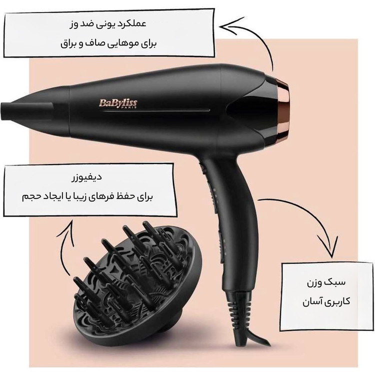 توان موتور 2200 وات، سیستم یون ساز، سه درجه گرمایش و دو درجه قدرت باد، دکمه باد سرد، طول سیم بلند 1.95 میلی متر