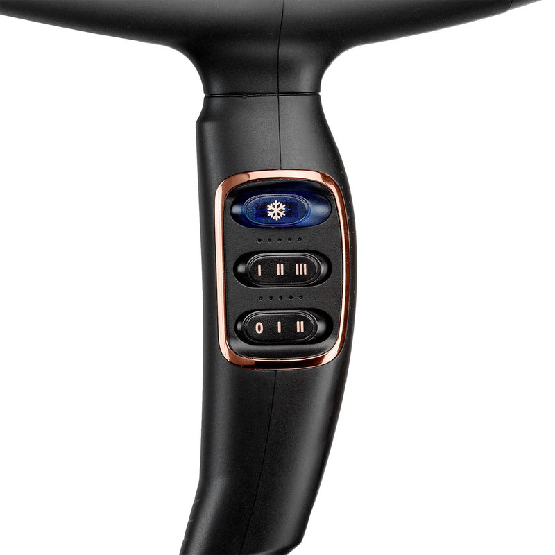 توان موتور 2200 وات، سیستم یون، جنس المنت تیتانیوم سرامیک، سه درجه گرمایش بهمراه دو سرعت تنظیم باد، دکمه باد سرد، سبک، طول سیم 3 متر