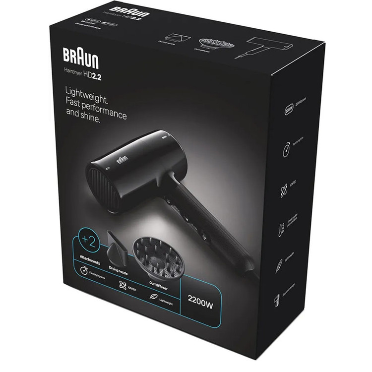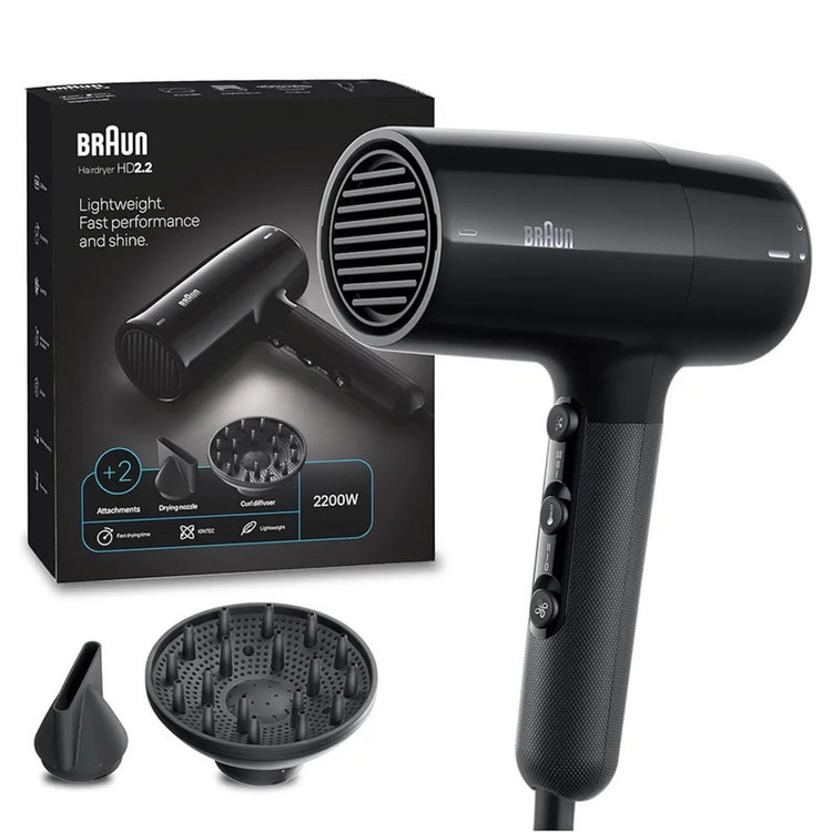 سشوار Braun HD225 2200 W سه تنظیم دما، دو سرعت و یک دکمه هوای سرد را برای تکمیل و تنظیم مدل مو ارائه می دهد. فناوری Iontech الکتریسیته ساکن را از بین می برد و موها را صاف، براق و سالم هیدراته می کند، بدون ریزش ناخواسته. لوازم جانبی شامل یک دیفیوزر با قطر 14.2 سانتی متر، ایده آل برای خشک کردن ملایم و مشخص کردن فرهای طبیعی، و یک نازل هوای باریک 12 میلی متری برای یک ظاهر طراحی دقیق است. کابل به طول 1.95 متر کار با آن را آسان می کند و به لطف مکانیزم تاشو که به سیم اجازه می دهد به راحتی بپیچد و ایمن ذخیره شود، از آسیب محافظت می شود. تعمیر و نگهداری سشوار به لطف فیلتر عقب قابل جابجایی و برس تمیز کننده کاربردی موجود در بسته بندی ساده است. وزن کم، راحتی در حین استفاده را تضمین می کند و خشک شدن سریع را حتی در دماهای پایین تر امکان پذیر می کند