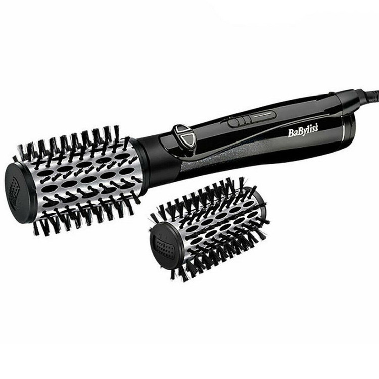 سشوار چرخشی بابلیس مدل الماس 2995U وسیلهای چند منظوره برای خشک کردن، برس کشیدن و دستیابی به موهایی خوش حالت، براق و بدون وزشدگی است. این دستگاه یک سشوار با سه درجهی قابل تنظیم دما و یک برس چرخان است که به موها حجم و حالت میدهد. همچنین دارای فناوری پیشرفتهی تولید یون است تا ضمن خشک کردن بهتر موها، از وز شدن و تجمع بار الکتریکی در آنها جلوگیری کند. این سشوار دارای دو سری برس قابل تعویض با موهای 42 و 50 میلیمتر و صفحهی سرامیکی تزریق شده با الماس است. سشوار چرخشی بابلیس مدل الماس ۲۹۹۵U به گونهای طراحی شده تا پس از هربار شستشوی مو، با کمک آن همزمان موها شانه زده، خشک کنید و حالت دهید. این دستگاه در دو درجه سرعت و سه درجهی دما قابل تنظیم بوده و به حجم گرفتن و پرپشت بنظر رسیدن موها بسیار کمک میکند. این سشوار با تکنولوژی تولید یون برای اکثرموها به خصوص موهای وز و مجعد مناسب است و از درهوا معلق ماندن و نامرتب بنظر رسیدنشان جلوگیری میکند. سشوار برسدار چرخان با دوسر قابل تعویض Babyliss ، دارای دو برس متوسط و بزرگ است تا با کمک آن بتوان موهای بلند و کوتاه را بهتر حالت داد. این محصول برای همهی انواع مو و بخصوص موهایی که نازک و کم حجم هستند یا لخت بودنشان باعث کم حجم بنظر رسیدن آنها میشود، مناسب است.