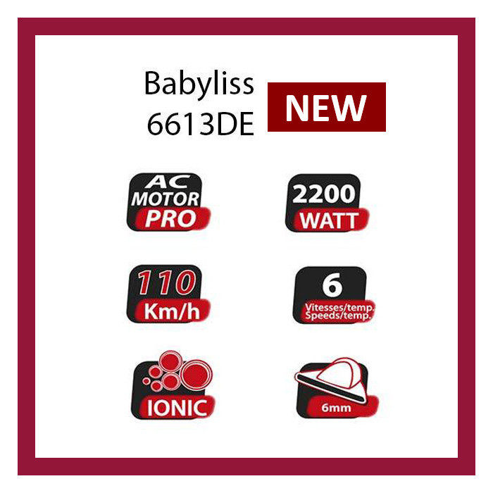 سشوار بابیلیس مدل 6613DE یکی از مدلهای جدید سری Pro Silence میباشد که به موتور AC سالنی قدرتمند 2200 واتی مجهز شده است و در کشور ایتالیا تولید میشود. این سشوار با موتور حرفهای و قدرتمند AC دستگاهی مناسب برای استفاده در سالنهای آرایش است. موتور AC طول عمری چهار برابر موتورهای قدیمی DC دارد؛ به همین دلیل موتورهای AC قابلیت استفاده و روشن ماندن بهصورت مداوم و در مدتزمان طولانی را دارند؛ درحالیکه موتورهای DC چنین قدرتی را برای استفادهی دراز مدت ندارند. تکنولوژی تولید یون (آیون / آیونیک) که در سشوار بابیلیس مدل 6613DE استفاده شده است با بکارگیری یک ژنراتور یونی و تولید یون منفی با شکستن مولکول های آب به ذرات ریزتر، باعث زودتر خشک شدن مو شده و زمان استفاده از سشوار را کمتر می کند و علاوه بر صرفه جویی در مصرف برق، باعث سالم تر ماندن مو ها می شود. مزیت دیگر یون منفی از بین بردن الکتریسیته ساکن مو است که باعث از بین رفتن وز مو و داشتن مو هایی خوش حالت تر می شود. عملکرد آیونیک برعکس تولیدات قدیمی این مدل به صورت دائمی می باشد و در ساختار داخلی دستگاه قرار دارد. از دیگر مشخصه های مهم این دستگاه داشتن سنسور حرارتی برای کنترل دمای موتور میباشد که در تولیدات قدیمی وجود نداشت. سشوارهای سری Pro Silence بابیلیس صدای کمتری نسبت به سشوارهای معمول دارند و این مدل هم صدای بلندی و آزار دهنده ایی ندارد. برای جلوگیری از ورود پرز، گرد وغبار و یا مو، فیلتری پشت سشوار تعبیه گردیده که از وارد شدن آنها به داخل سشوار جلوگیری می کند. فیلتر ورودی هوای سشوار بابیلیس مدل 6613DE را میتوان با کمی چرخاندن جدا کرد و سپس آن را تمیز نمود. بهاینترتیب علاوه بر اینکه قدرت دمندگی سشوار حفظ میشود، طول عمر آن نیز افزایش مییابد. این سشوار ابعاد کوچک و وزن پایینی دارد و هنگام باعث خستگی دست نمیشود. این مدل دارای دو عدد سری میباشد ، نازل حرفه ای سری پیش فرض میباشد و نیز دارای سری دیسپانسر برای حجم دهی به موها میباشد. داشتن باد سرد برای تثبیت حالت دهی مو از دیگر امکانات این مدل میباشد. در پایان چنانچه قصد خرید سشوار از مدلهای رده بالای بازار را دارید این مدل انتخاب ایده آلی میباشد.
