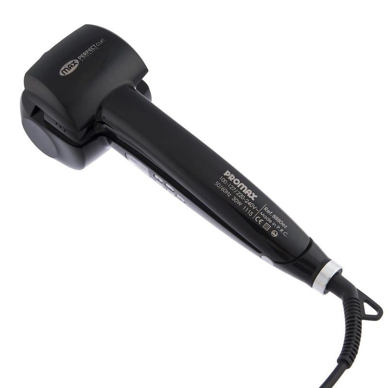فر کنندهی مو «پرومکس» (Promax) مدل «8880ez» جزو سری جدیدی از فر کنندههای مو است که به فر کنندههای اتوماتیک، فر کنندهی جادویی، فر کنندهی چرخشی و غیره معروف هستند. این دستگاهها دارای یک مخزن حرارتی با استوانهای داخلی هستند. این استوانه قابلیت چرخش در دو جهت را دارد. با بستن دستهی دستگاه کلید فعالسازی فشرده میشود و استوانه شروع به چرخیدن میکند. جهت چرخش را میتوان در یکی از دو حالت ساعتگرد و پادساعتگرد تعیین کرد. همچنین دمای مخزن حرارتی را نیز میتوان در یکی از دماهای 190، 210 و 230 درجهی سانتیگراد تنظیم کرد. از آنجایی که زمان ماندن موها داخل مخزن حرارتی بسیار مهم است، سه زمان 8، 10 و 12 ثانیه برای این منظور در نظر گرفته شده است که میتوان با توجه به جنس مو و ماندگاری فر یکی از این زمانها را انتخاب کرد. همهی این تنظیمات روی صفحهنمایش دیجیتال دستگاه نمایش داده میشود. از ویژگیهای ظاهری 8880ez باید به بدنهی عایق حرارت، سیم چرخان و حلقهی آویختن اشاره کرد. پشت دستگاه از مادهی عایق حرارتی درست شده است تا در زمان استفاده از تماس سطح داغ آن با پوست جلوگیری شود. سیم برق 2.4 متر طول دارد و در محل اتصال به بدنه میچرخد. به این ترتیب از آسیب دیدن سیم و فرسودگی آن با گذشت زمان جلوگیری میشود. در انتهای سیم حلقهای برای آویزان کردن دستگاه دیده میشود. علاوه بر اینها یک عدد کیف نیز همراه این مدل ارائه شده است تا حمل و نگهداری از آن آسانتر شود. به طور خلاصه فر کنندهی موی Promax 8880ez دارای مخزن حرارتی چرخشی، سه حالت دما و سه حالت زمان، صفحهنمایش دیجیتال و کیف نگهداری بوده و با طراحی جدیدی که دارد کار فر کردن موها را آسانتر کرده است.