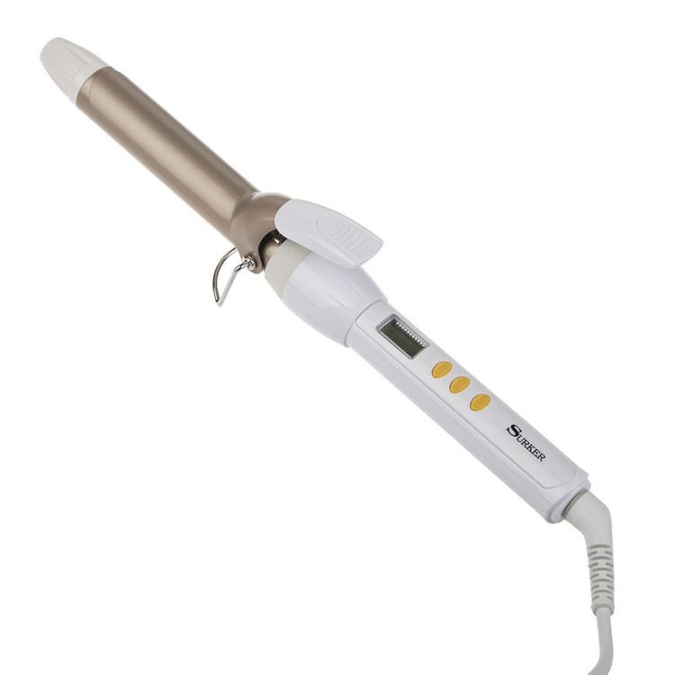 فر کنندهی موی «سورکر» (Surker) مدل «19-HB-305» دارای مخزن حرارتی با قطر 19 میلیمتر و صفحهنمایش دیجیتال است. با اتصال سیم دستگاه به پریز برق صفحهنمایش با رنگ نارنجی روشن شده و عبارت OFF را نشان میدهد. با فشردن دکمهی روشن/خاموش المنت دستگاه شروع به گرم شدن میکند. قابلیتی که در کمتر دستگاهی دیده میشود، نمایش دمای المنت به شکل لحظهای است. توسط دکمههای مثبت و منفی روی بدنه میتوان دمای فر کننده را 10 درجه کم یا زیاد کرد. این دمای از 100 تا 200 درجه قابل تنظیم است. فر کننده مجهز به سیستم قفل دما است. برای فعال کردن این قفل باید یکی از دکمههای مثبت و منفی را یک ثانیه نگه داشت تا عبارت LOC روی صفحه، نمایش داده شود. دراین حالت هیچکدام از دکمهها کار نمیکنند و میتوان بدون نگرانی از تغییر ناخواستهی دما کار آرایش مو را انجام داد. برای غیرفعال کردن این قفل باید عمل ذکرشده در بالا را دوباره تکرار کرد. روی سطح فلزی استوانه با سرامیک پوشش داده شده است و توسط اهرم دستگاه میتوان گیرهی مو روی استوانه را باز کرد. در انتهای این استوانه ، یک قطعه پلاستیک عایق قرار دارد که از تماس مستقیم سطح داغ مخزن حرارتی با پوست جلوگیری میکند. در وسط بدنهی دستگاه یک فلز جمع شونده دیده میشود که برای قرار دادن فر کننده روی سطح استفاده میشود. هنگامی که سطح مخزن حرارتی دستگاه داغ است این پایهی نگهدارنده بسیار کارآمد ظاهر میشود. طول سیم دستگاه 1.9 متر است و در محل اتصال به بدنه حالت چرخشی دارد که استفاده از دستگاه را راحتتر میکند. به طور خلاصه Surker HB-305-19 دارای استوانهی پوشش داده شده با سرامیک، 10 دمای قابل تنظیم از 100 تا 200 درجهی سانتیگراد، صفحهنمایش دیجیتال، سیستم قفل دما، پایهی نگهدارنده و سیم چرخشی است.