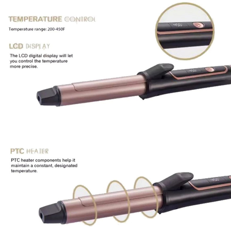 محدوده دما: 200-450F صفحه نمایش دیجیتال LCD به شما امکان می دهد دما را دقیق تر کنترل کنید. اجزای بخاری PTC به آن کمک می کند دمای ثابت و تعیین شده را حفظ کند. سیم چرخشی 360 درجه قابلیت تنظیم دما