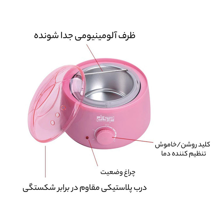 - دارای درب پلاستیک نشکن و مقاوم- مناسب فقط برای ذوب وکس- دارای چراغ LED-مناسب جهت مصرف خانگی و آرایشگاه-نامناسب برای ذوب و آب کردن موم
