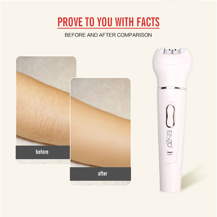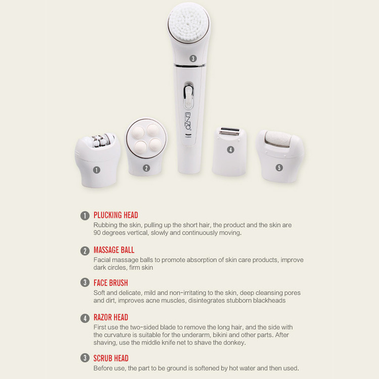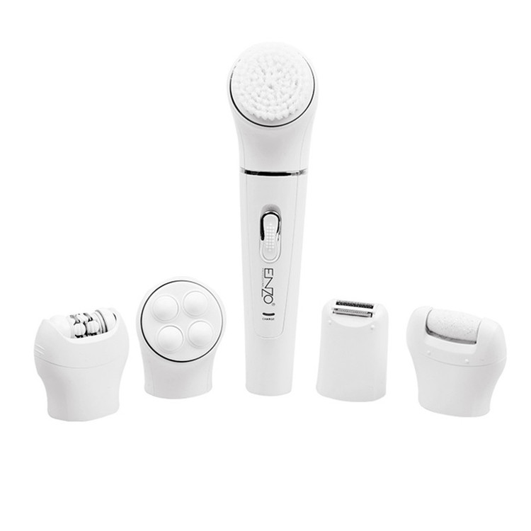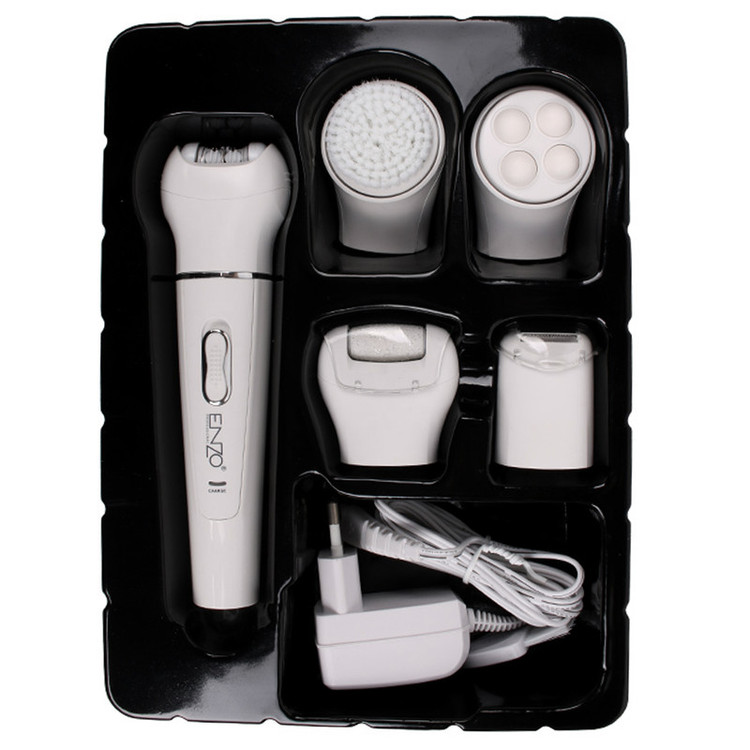 اپیلاتور انزو پروفیشینال مدل EN-0104 محصولی کاملا حرفه ای و ضد آب است که همزمان 5 نیاز مختلف را برآورده می کند. این دستگاه علاوه بر سری اپیلاتور دارای سری ماساژور بدن ، سری برس پاکسازی پوست،سری سنگ پا و سری شیور است. سری اپیلاتور، موچینهایی از جنس استیل ضد زنگ دارد که طراحی ویژه آنها، کمک میکند که همهی موها حتی موهای خوابیده از سطح پوست بلند شده و در دام موچینها بیافتند. سری شیور برای کوتاه کردن موها از ته استفاده میشود. پس از اتمام کار اصلاح میتوان به کمک سری ماساژور چرخشی، روی پوست را ماساژ داده تا ضمن برخورداری از حسی لذتبخش، تفاوت رنگ قسمتهای مختلف پوست نیز برطرف شود.سری سنگ پا شما را از شر پوست های مرده و سفت شده خلاص می کند. از سری فیس براش می توان جهت پاکسازی پوست بهره برد. این اپیلاتور دارای استاندارد مقاومت در برابر آب و رطوبت بوده که باعث می شود بتوان از آن در حمام و زیر دوش استفاده کرد. منبع انرژی اپیلاتور از باتری قابل شارژ لیتیوم یونی آن تأمین میشود که با شارژر ارائه شده به همراه محصول شارژ می شود. از این دستگاه هم با سیم و هم بدون سیم میتوان استفاده کرد.