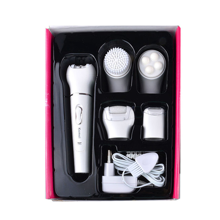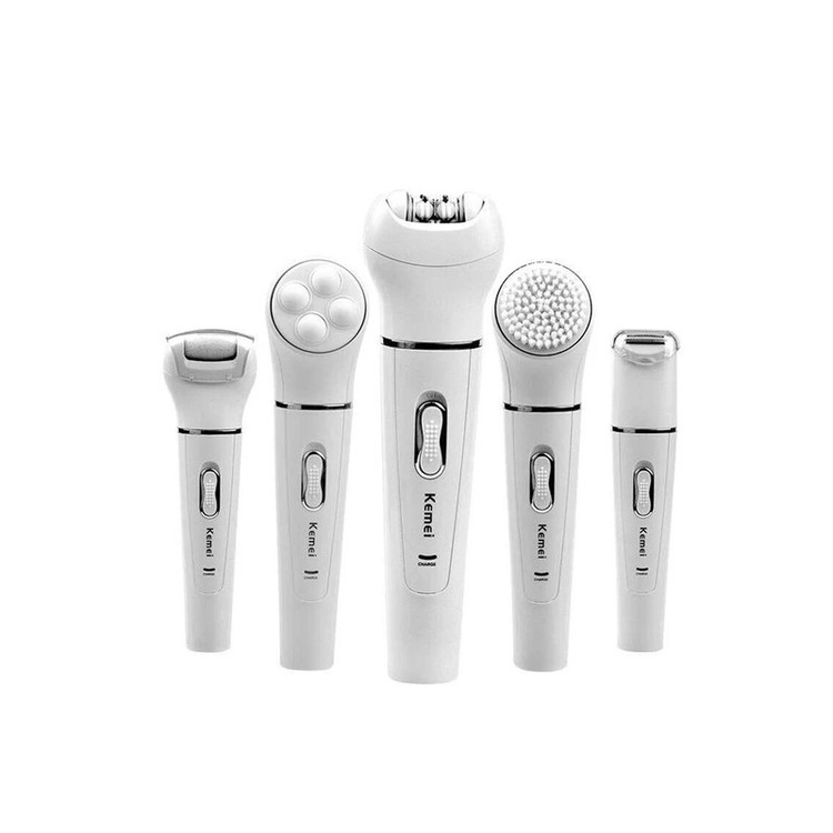 اپیلاتور پنج کاره حرفه ای برند کیمی مدل KM-2199 دارای پنج عدد سری می باشد که هر کدام از آن ها کارایی مخصوص به خود را دارد. این اپیلاتور برای اصلاح موهای زائد بدن طراحی شده است که می توان موهای کل بدن را اپیلاسیون کرد. سری شیور آن هم برای اصلاح قسمت های دیگر بدن قابلیت دارد. سری فیس براش آن برای پاکسازی پوست از آلودگی های آسیب رسان و پاک کردن آرایش از پوست کارایی دارد و می توان از سری ماساژور آن نیز بهره برد و همچنین یک سری سنگ پا نیز دارد.