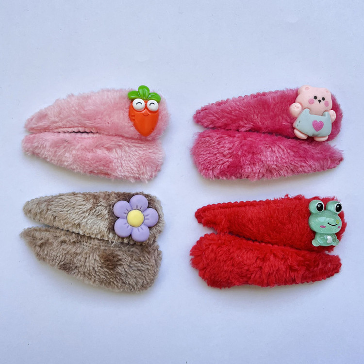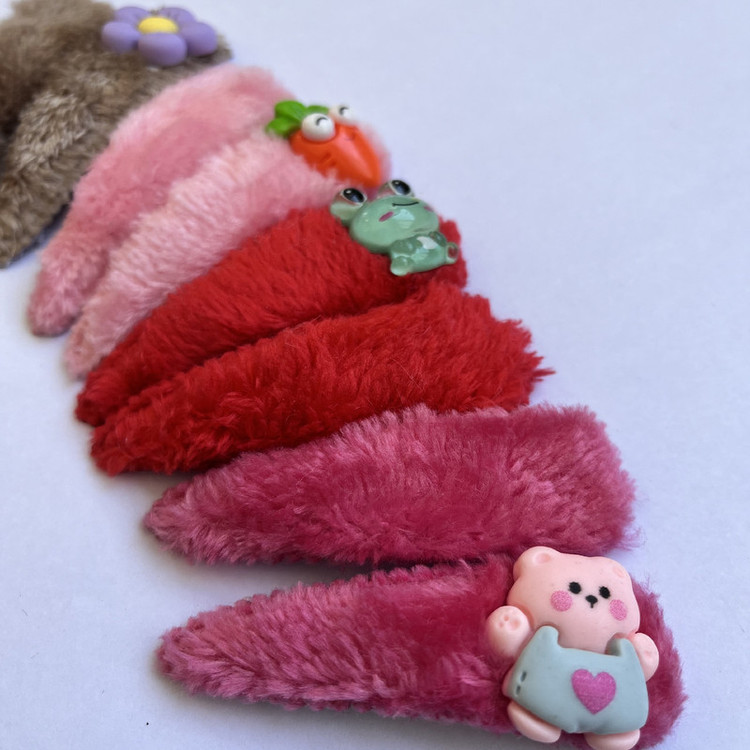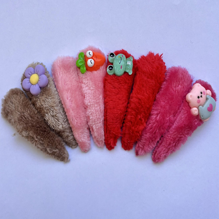 گیره مو دخترانه مدل تق تقی طرح پشمی مجموعه 8 عددی