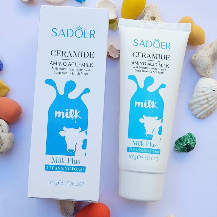 فوم شستشوی شیر صورت SADOER مدل Ceramide Amino Acid Milk،راز زیبای وسفید شدن پوست