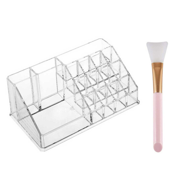 استند لوازم آرایشی از جنس اکرولیک شفاف ساخته شده و مناسب انواع لوازم آرایشی می باشد و قلم ماسک نیز وسیله ای بسیار کارا جهت پخش انواع ماسک روی صورت می باشد.