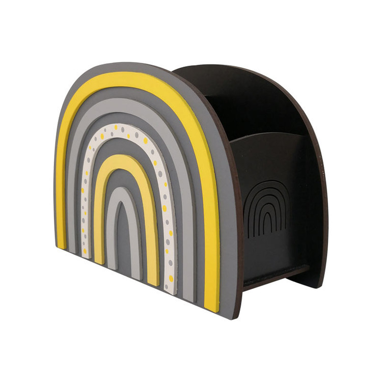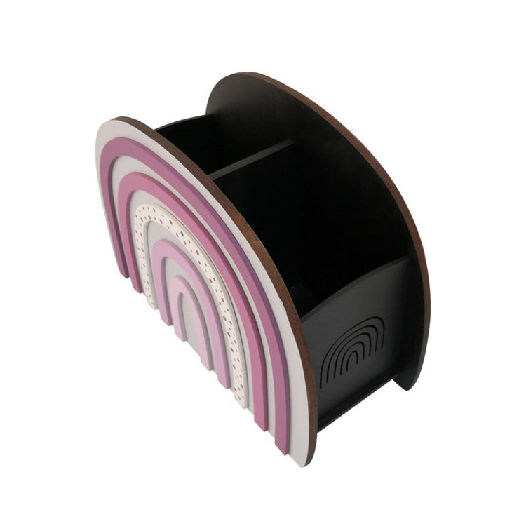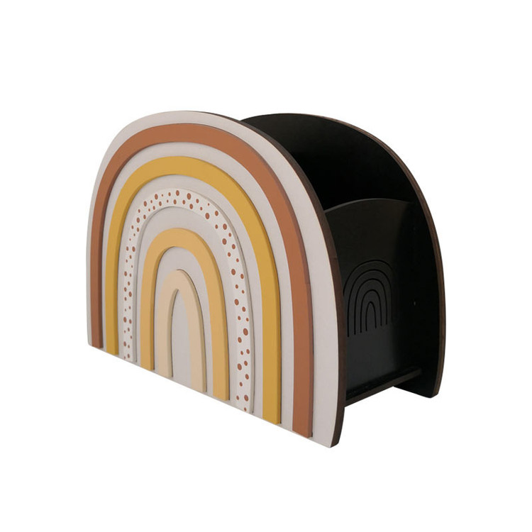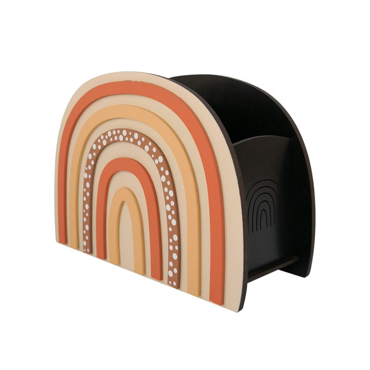 استند آرایشی ماوراء مدل رنگین کمان با طراحی و ساخت ویژه و اختصاصی مجموعه ابزاری مناسب جهت نظم دهی به انواع قلم مو و لوازم آرایش میباشد، گنجایش بسیار عالی در کنار زیبایی مثال زدنی آن باعث شده است با کالایی محبوب و کاربردی روبرو باشیم. این محصول ساخته شده از ام دی اف مرغوب خارجی بوده که رنگ آمیزی با کیفیت آن با کیفیت بالایی انجام شده است. قابلیت تمیز کردن آسان با دستمال نمناک بدون آسیب به رنگ محصول و همچنین روکش براق و روغنی محفظه داخل نگرانی از بابت تمیزی کثیف شدن داخل استند را از بین میبرد.