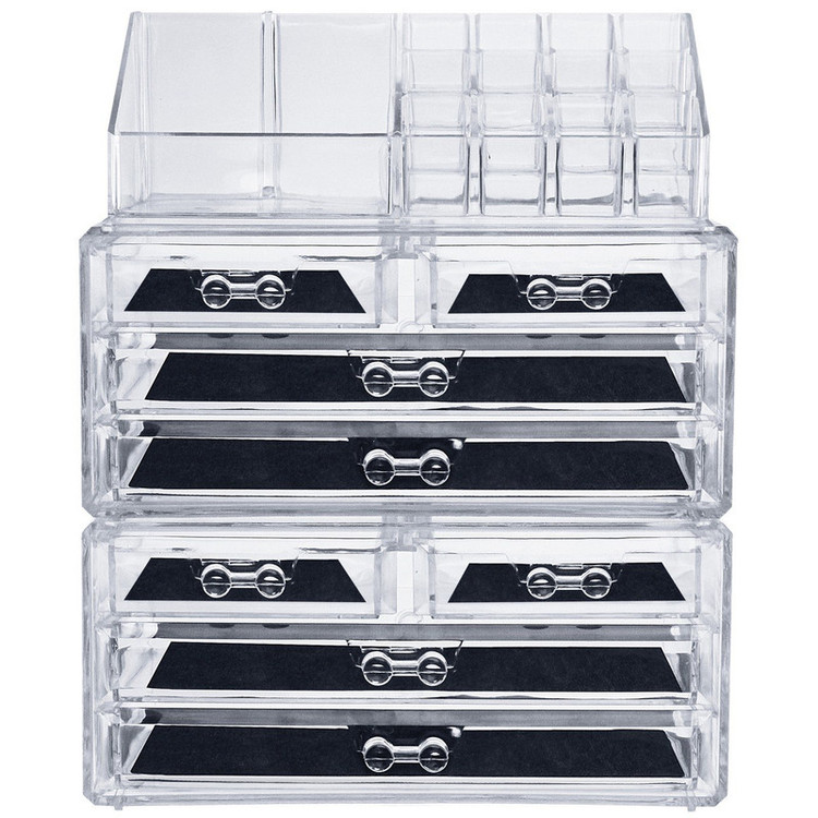 گاهی تعداد زیرآلات و لوازم آرایشی تان آنقدر غیر قابل کنترل می شود که در بینظمی میز آرایشیتان دخیل است، بهطوریکه ممکن است بعد از مدتی بعضی از وسایلتان را گم یا فراموش کنید. راهکاری وجود دارد که به این بینظمی سامان دهید. اگر لوازم آرایشی شما دارای طبقات مشخص باشند کیفیت خود را بهزودی از دست نمی دهد. استندهای آرایشی توسط تولیدکنندگان مختلف تولید میشود که از کوچکترین ابزار آرایش تا بزرگترین وسیله که برس مو است را میتوان داخل این استند قرار داد. استند آرایشی مدل 08 برای هر ابزاری جایگاه منحصر بهفردی دارد. این محصول از پلاستیک ساخته شده و کاملا شفاف است و در صورتی دیده شدن کثیفی و یا آلودگی قابل شستشو خواهد بود. این نوع استند جایگاه ویژهای برای رژلب، مدادهای آرایشی، تجهیزات آرایشی صورت و چشم را در خود جای داده است. این محصول برای هر نوع وسیلهی آرایشی طبقهبندی شده و امکان قرار گرفتن چندین رژ لب در این استند وجود دارد، همچنین در قسمت بالایی این استند چندین جایگاه جهت قرار گرفتن مدادهای آرایشی، ریمل و برسها و تجهیزات آرایشی تعبیه شده است. این محصول در ابعاد 14 × 24 × 30 سانتی متر است که در روی میز آرایشی و هر کمدی جای داده میشود. استند آرایشی مدل 08 تمام ابزارهای آرایشیتان را منظم کرده و استفاده و دسترسی را برایتان راحت کرده است.