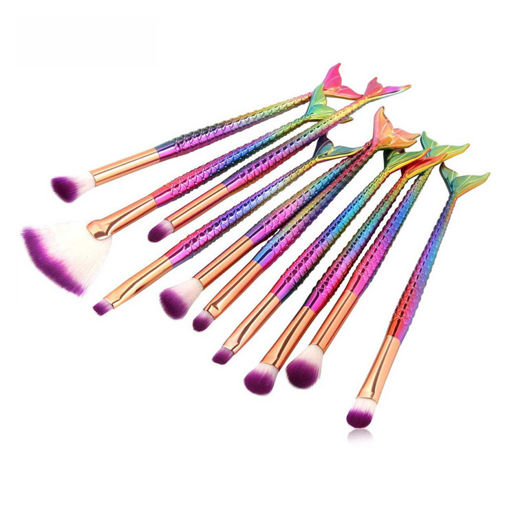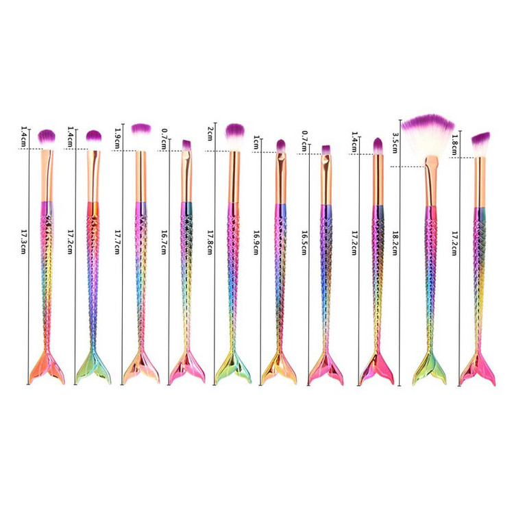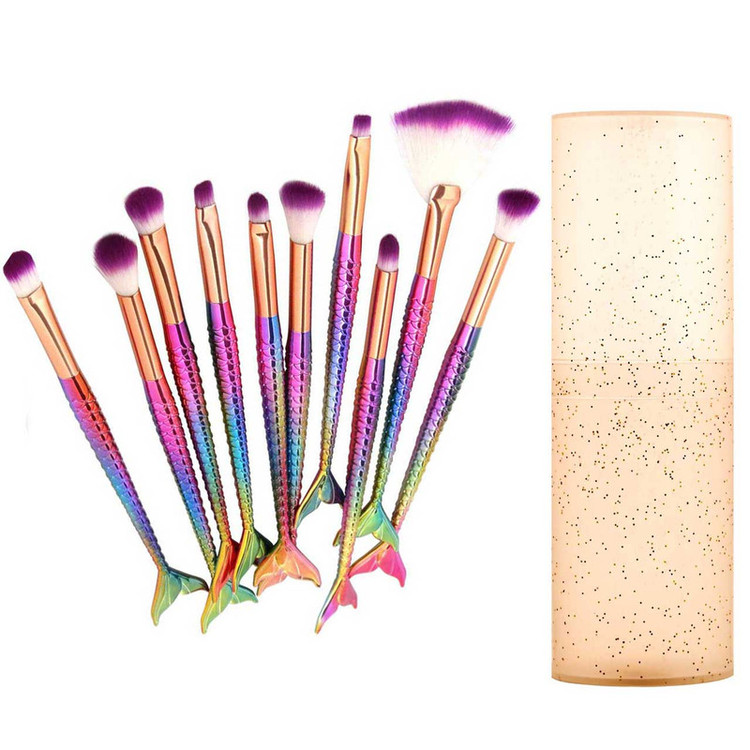 ست براش آرایشی پری دریایی 10 عددی بسیار با کیفیت و زیبا دارای استند مخصوص نگهداری براش که از ضربه دیدن و له شدن و شکستگی براش ها جلوگیری می کند. براش ها بدون ریزش می باشند.