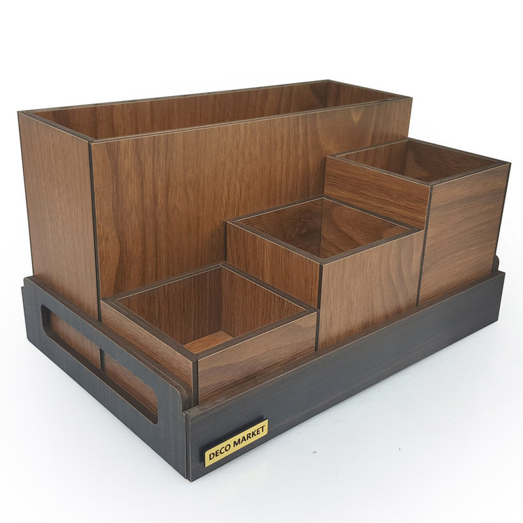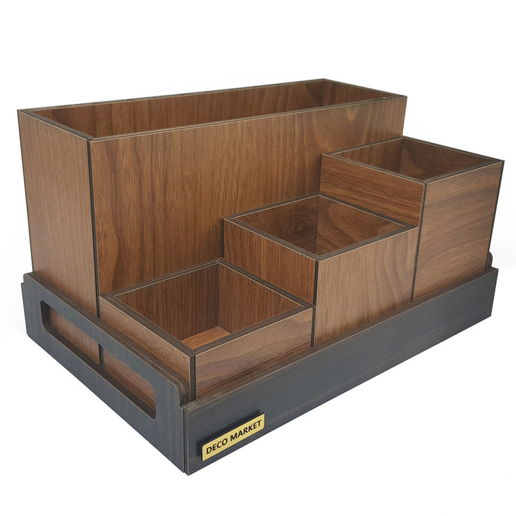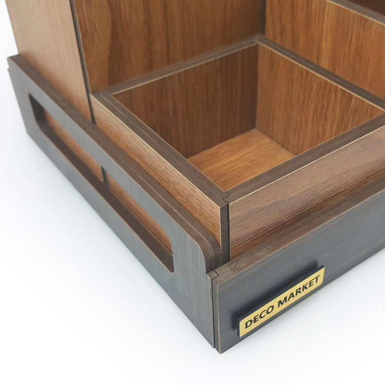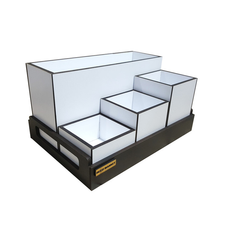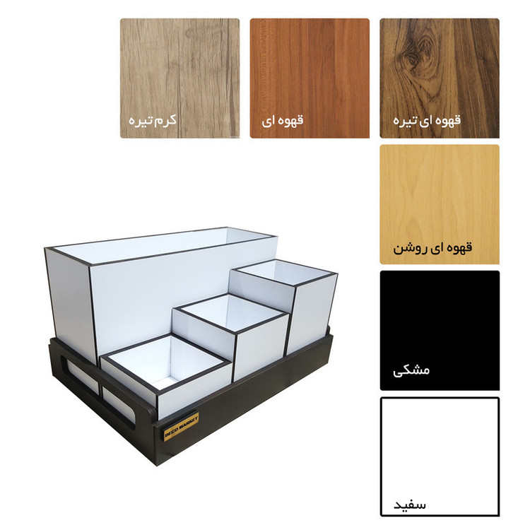 استند لوازم آرایشی دکو مارکت از جنس ام دی اف 2 لایه جهت استحکام بیشتر میباشد. این محصول قابل استفاده بصورت کنار هم و جدا از هم جهت تنوع بیشتر در حالت قرارگیری است. این محصول مناسب برای میز لوازم آرایش میباشد. کف سینی شکل این محصول از دیگر ویژگی های این محصول است.